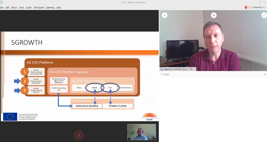 Manuel Lorenzo - 5G EVE at 5G PPP TBAt the recent 5G PPP Technology Board meeting on 26-27 May 2020, 5G EVE’s technical manager Manuel Lorenzo from Ericsson Spain shared the experiences gained in providing the 5G EVE platform to vertical use case experimenters from ICT-19 projects.