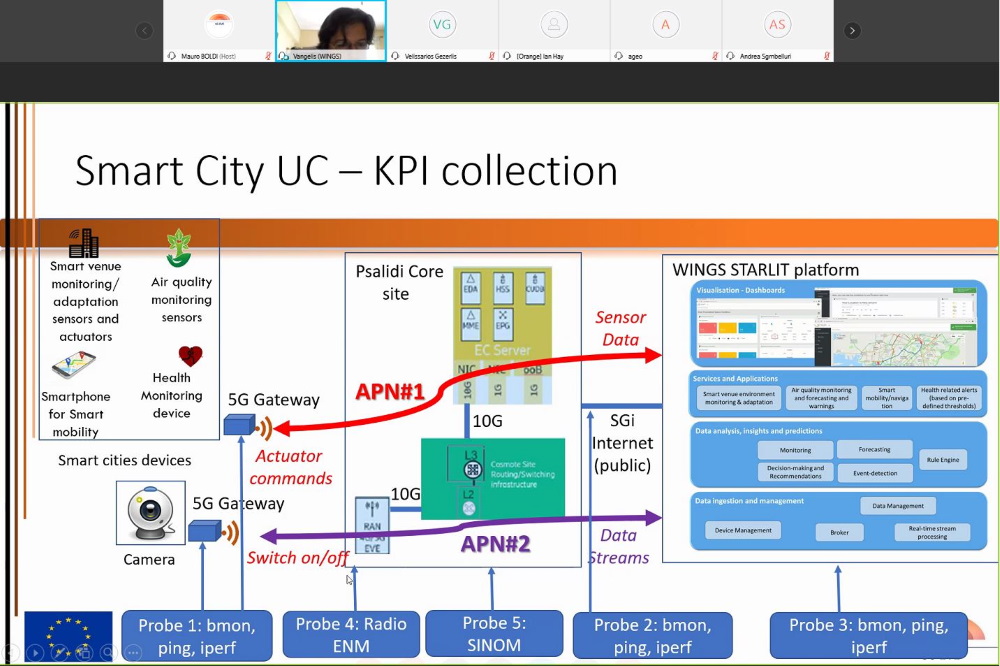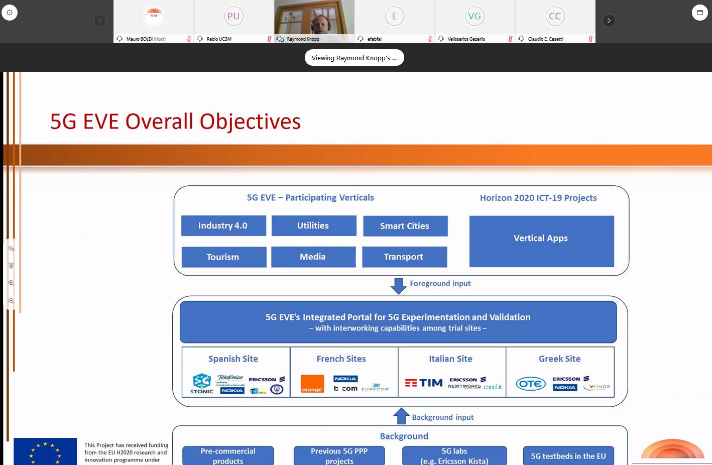 The first 5G EVE Training webinar took place on 6th May 2020. There were approximately 70 registered participants from the greater Horizon 2020 research community and in particular several of the 5G PPP use case (ICT-19) projects that are using the 5G EVE infrastructure for vertical field trials. The three-hour session was shared between members from EURECOM, UC3M, IMDEA, CNIT, COSMOTE and WINGS-ICT Solutions.