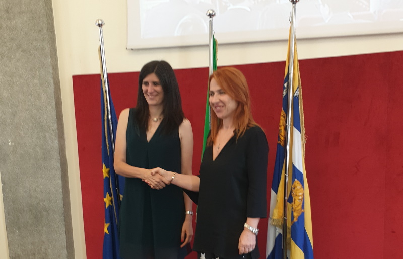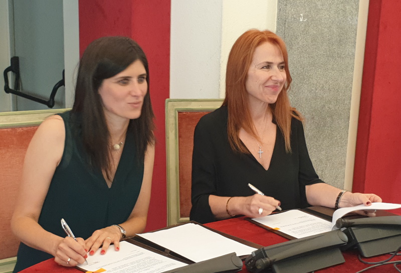 Chiara Appendino (left), Mayor of Turin, and Elisabetta Romano, TIM Chief Technology and Innovation Officer, signing the MoU.