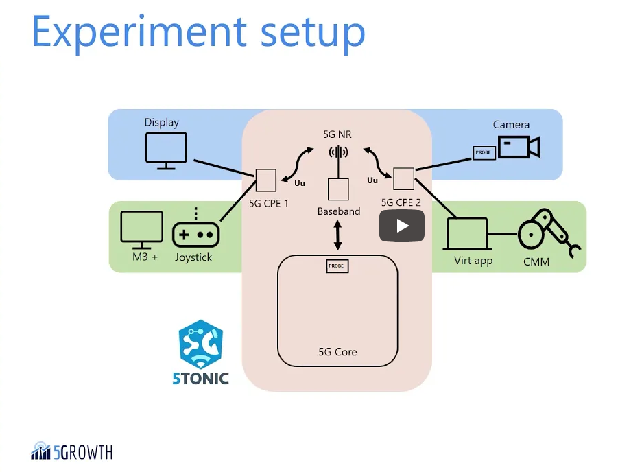 The 5Growth use case involves remotely operating and maintaining a 3D scanner and other quality equipment via a 5G connection. The use case takes advantage of 5G latency reduction to enable the implementation of a global virtual joystick for remote human programming of a 3D scanner, Cartesian robot trajectories and hybrid (tactile/optical scanning) data acquisition; i.e. quality control routines. 5G connectivity is provided between a control software on one end, and a 3D optical scanner and a camera on the other end. The camera streams a video that is used by the metrology expert on the other end to be able to control the scanner. The expert also receives the results of the optical scan for analysis. In this way, one of the most expensive maintenance tasks for the 3D scanner will be significantly reduced thanks to the use of the 5G technologies, which will effectively enable remote control operations, thus avoiding the cost of on-site human interventions. The new remote operation capabilities of the 3D scanner will reduce by half the total preparation of deployment time of a new measuring program, gaining agility on the process of changing the parts being measured. Also, this will bring a higher service availability, as specialised personnel will not be unavailable because of travelling.
