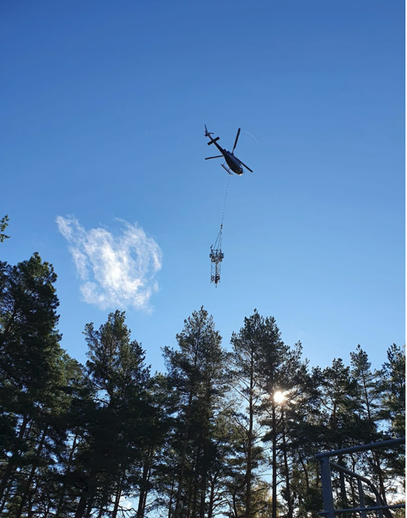 A breath-taking moment for 5G-VINNI. The complete 5G base station being air lifted for installation at Norwegian Defense premise. The installation is part of one of the main use cases being performed in 5G-VINNI towards validation of verticals applications. The so called defense use case is being supported by a dedicated network slice as described in a video.