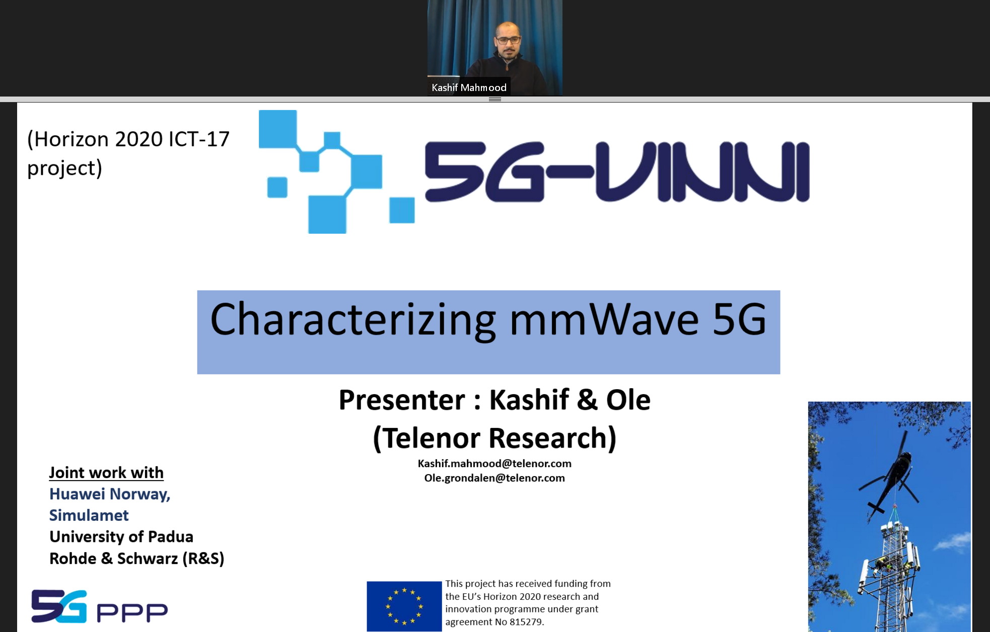 Rohde & Schwarz invited Dr. Kashif Mahmood and Dr. Ole Grøndalen from Telenor as guest speaker to present the results of the Measurements from 5G-VINNI on 5G mmWave. The life seminar on Efficient 5G field measurements with Mobile Network Testing solutions from Rohde & Schwarz was held on 3 November.
