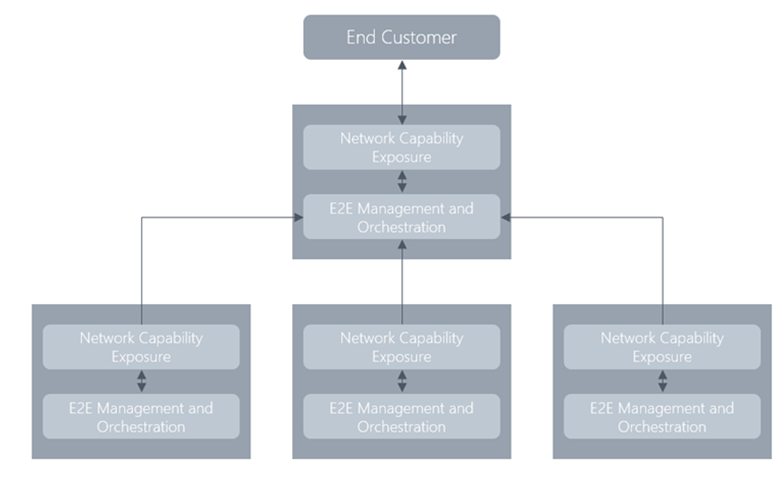 Figure 3: Recursive structure of network capability exposure and E2E Management and Orchestration