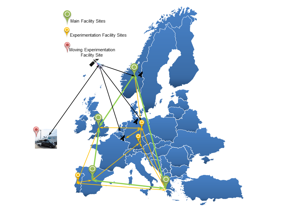 The 5G-VINNI facility sites are illustrated in the Figure 1 with the Main Facility Sites (Norway, UK, Spain, Greece) and the Experimentation Facility sites (Portugal, Munich, Berlin). In addition there is a mobile experimentation facility site in the form of a rapid response vehicle for public protection and disaster relief (PPDR) use cases and potentially a boat.