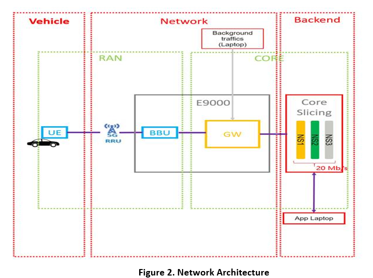The experiment makes use of the 5G 3.41 GHz prototype system deployed in HUAWEI MRC facility. HUAWEI MRC provides pre-standard RAN and Core Network, the 5G UE prototype modem is mounted in the ambulance, and the base station and CORE network are located in HUAWEI MRC premises, see Figure 2.