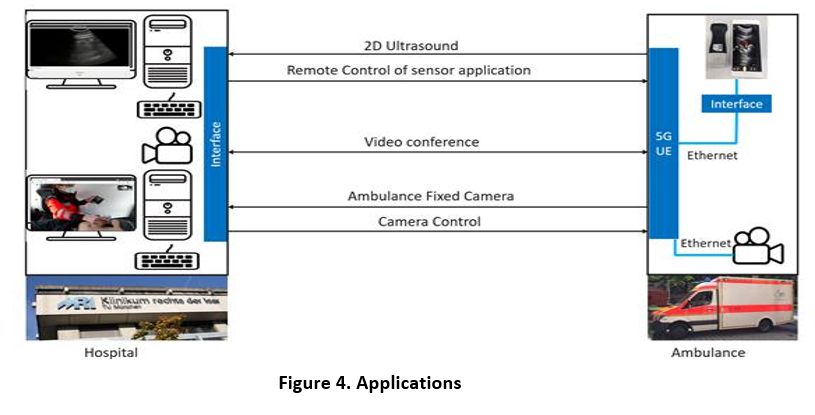 Our target in the test is to provide a 5G based data transfer facilitating bi-directional data transmission for ultrasound and video source between: