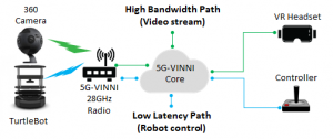 Experimentation at the 5G-VINNI UK Facility This article describes a project to demonstrate the use of two simultaneous paths through the 5G-VINNI network to undertake remote robotic control, while at the same time providing the robot’s controller with a 360° view from the robot’s cameras, viewed through a virtual reality...