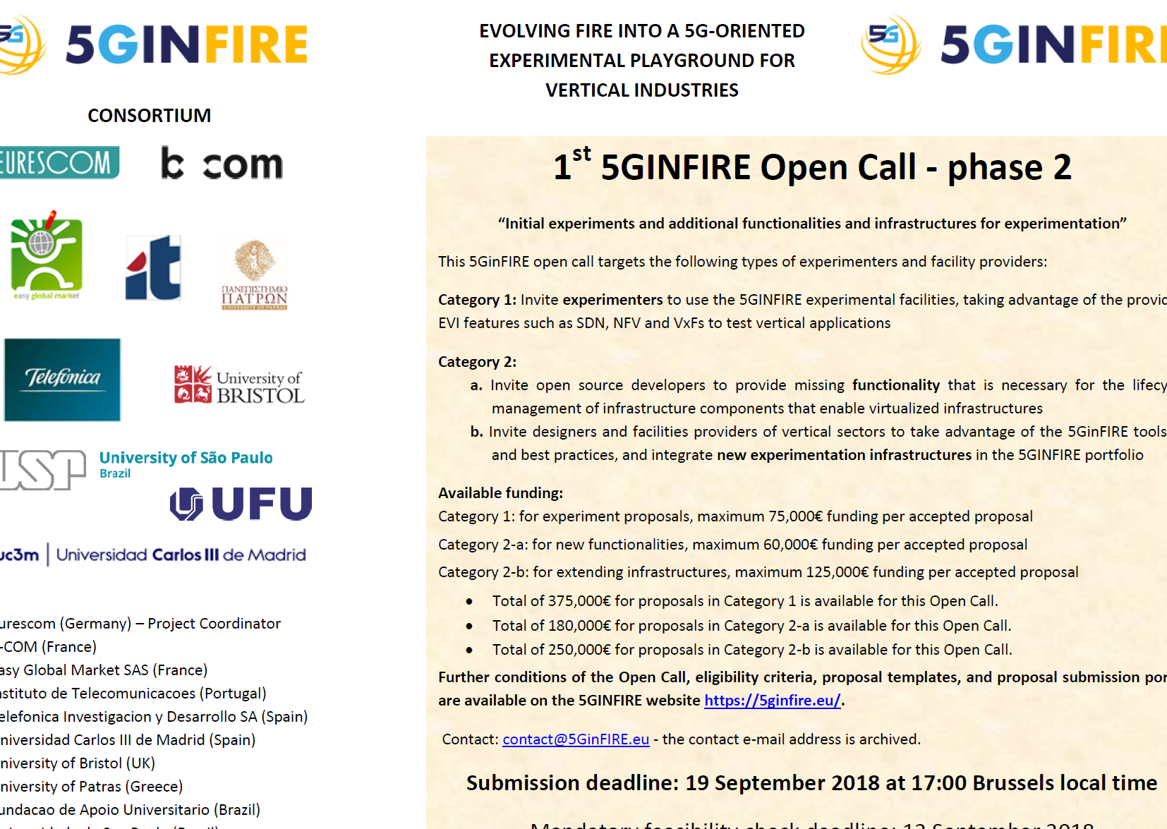 1st 5GINFIRE Open Call – phase 2 – launched