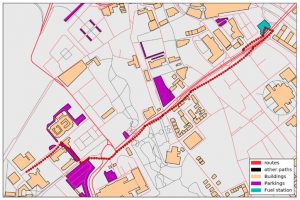 Test results are shown on figures below. Figure 3 shows subsequent vehicle location during simulation tests (red dots). It is easy to see in Figure 4 that the location types correlated with the use case were found correctly and without any disturbance. Figure 5, Figure 6 and Figure 7 visualise test conditions for video and network. As it is shown in Figure 8 and Figure 9 parameters of the video stream are not constant and they change during tests. In the first phase of the experiment (0-75 s) there were performed extra moves in front of the RPi camera to simulate dynamic changes of the environment. The frame rate of the stream grows (from 26 to 32 FPS) but resolution stays constant. Between 35 and 50 s of the test the vehicle goes on parking, so the base of the control process is changed – both FPS and resolution adjust to another use case. In the middle phase of the test (100-225 s) TA in the video is low, so the frame rate drops to reduce network usage. When vehicle enters an area of the fuel station (225 s) ControlApp changes parameters of the video stream once more to adapt to user’s expectations because higher resolution is required and lower frame rate is acceptable to save bandwidth of the radio interface.