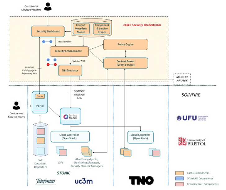 The ExSEC SO can integrate with the 5GINFIRE supported-APIs (5GINFIRE Portal [3] and OSM APIs/SDK [4]). It provides visualization of the service graph, security enrichment and a context metadata model.