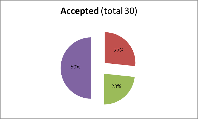 Altogether 119 proposals for experiments have been submitted and 22 of them accepted , resulting with an overall success rate of 18%. The highest number of proposals has been received and accepted from SMEs.
