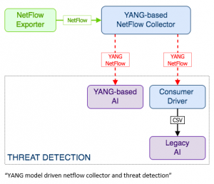 The paper focus on the opportunity to integrate model-driven approach for data collection in networks, using YANG models. The work proposes a specific YANG data model for Netflow protocol, a widely used protocol in current network operation for attack detections. Moreover, the solution shows an application for aggregation and transformation of the data into a suitable format to be used by analytics engines, such AI detectors.