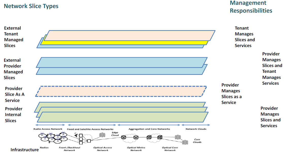 Figure 2 Network Slicing and Management Responsibilities – Source IEEE NETSOFT Tutorial: Network Slicing Landscape