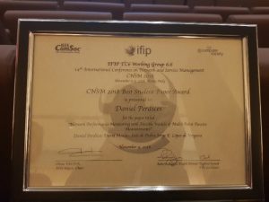 Well done to Daniel Perdices and his co-authors: David Muelas, Luis de Pedro, Jorge E. L´opez de Vergara; for their award-winning paper “Network Performance Monitoring with Flexible Models of Multi-Point Passive Measurements”. This paper was published the 14th International Conference on Network and Service Management 2018 – http://cnsm-conf.org/2018/.