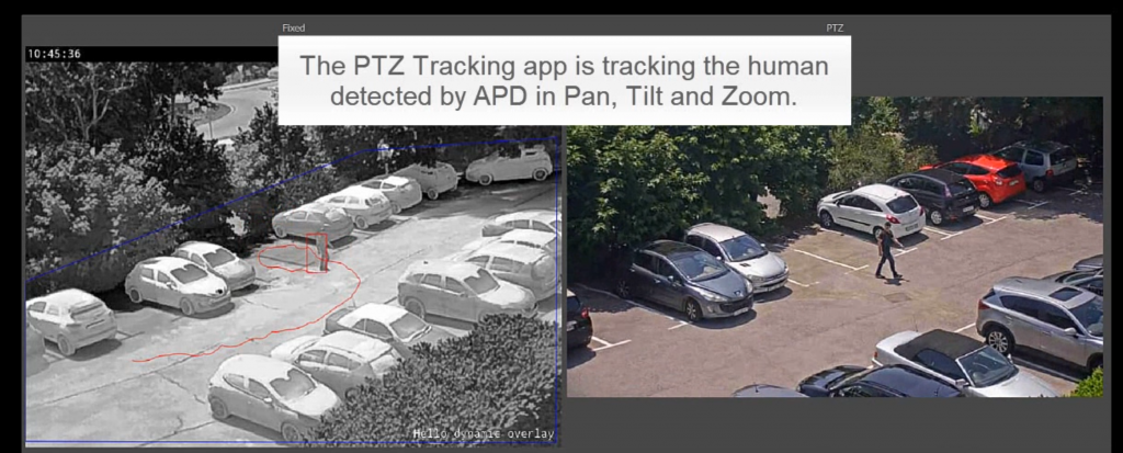 A typical scenario would be to secure a parking lot with a thermal camera using a wide field of view. The video analytics on this camera are programmed to detect human movement and track the person. This tracking data is then transmitted to a second camera that has pan, zoom and tilt (PTZ) capabilities. The second camera is thus able to zoom in on the person and follow the person around, even when movement is quick and erratic, since the actual tracking is done based on the overview. More than one PTZ camera may be used in a larger area. For this setup to work, the latency needs to be below 5ms.