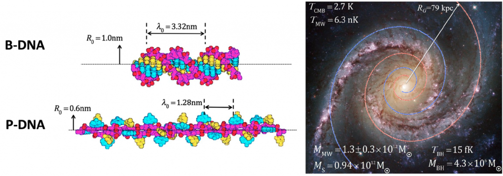 Figure 2: Application of Maximum Entropy theory to DNA and the Milky Way galaxy [2].