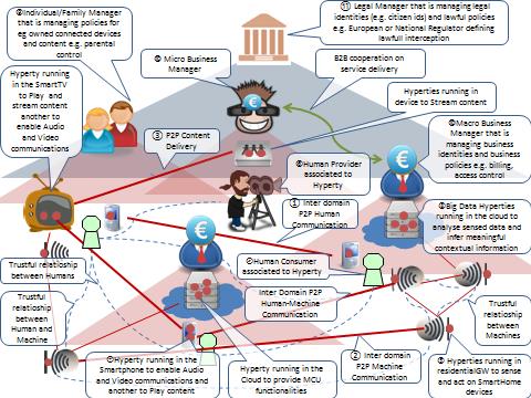The main goal of the reTHINK project is to design and prototype a new, non telecom centric, but Web-centric P2P Service Architecture enabling dynamic trusted relationships among distributed applications called Hyperlinked Entities (“Hyperties”) that support use-cases beyond commoditized telephony such as contextual and social communications, M2M/IoT and content oriented services. This project will enable any type of service delivery through specialized end-to-end network quality commitments, powered by specialized P2P and/or Cloud services (delivered as SaaS, PaaS or IaaS).