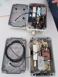 Figure 1: Two UrbMics box field prototypes prepared for construction site installation, left: with, right: without built-in UrbMics WSN components).