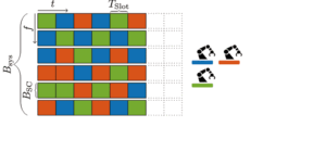 Figure 5: Example of resource allocation for three links where each link gets allocated two resources in each time step.